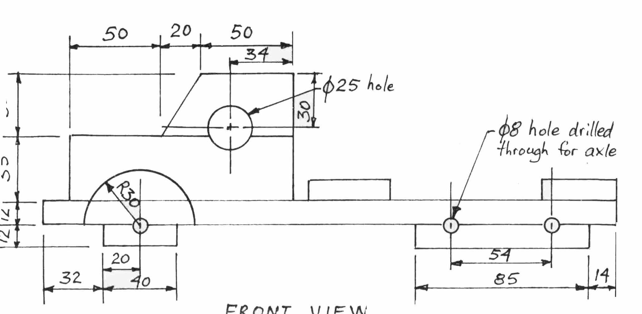| 4) Sketch of Group #2's final design idea of Dump Truck. | 5) Sketch of Group #3's final design idea. Photos of the three possible solutions were emailed to the client and feedback evaluation & comments received by return email. | 6) Freehand sketch of final design after modification by client and the whole class. |